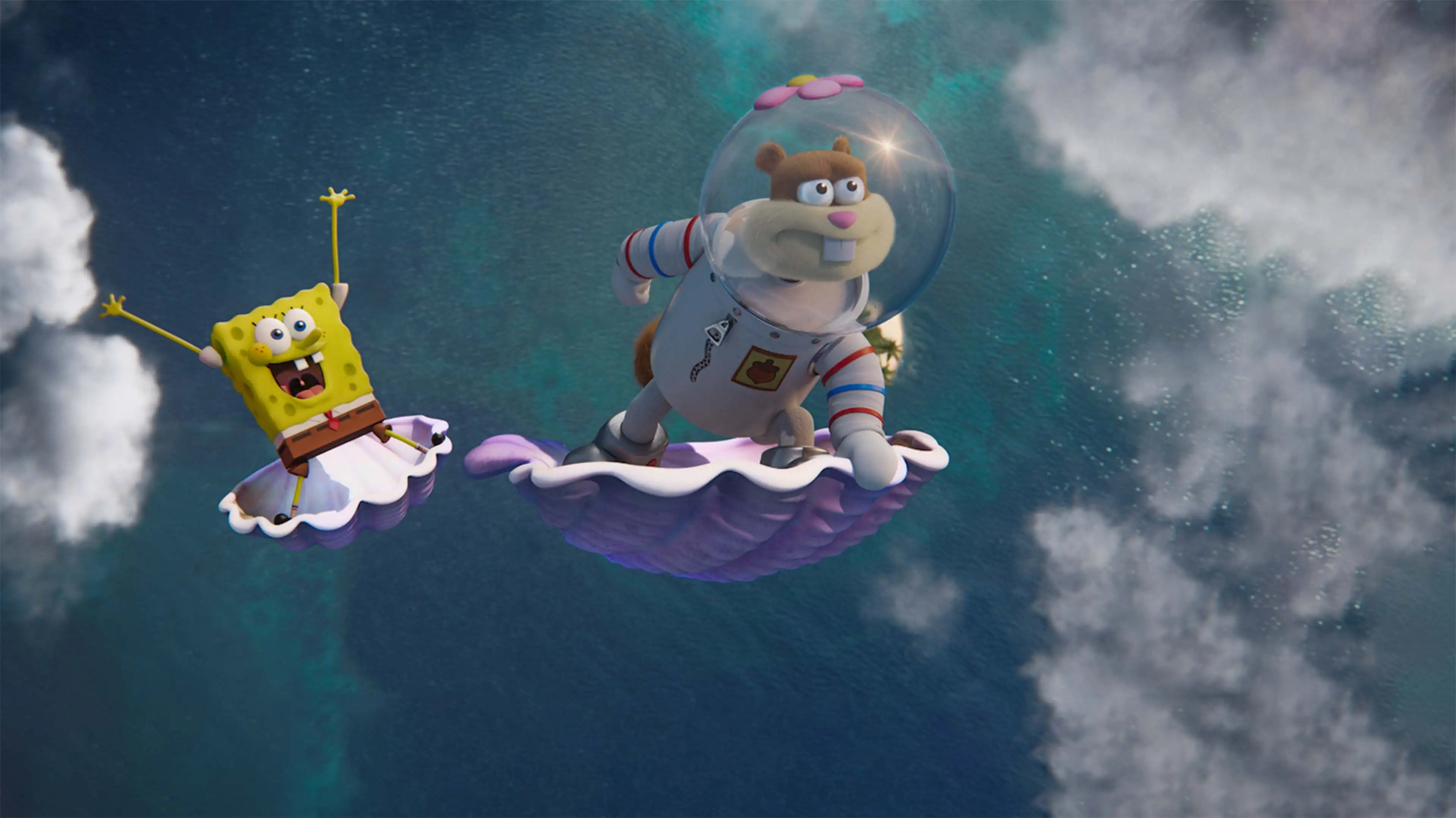 شهر "بیکینی باتم"، ناگهان از اقیانوس به بیرون کشیده شده و ساکنان آن در خطرند. در حالی که"سو نامی"، تاجر سودجو، می خواهد از این موقعیت بهره ببرد، "سندی چیکس"، سنجاب بی باک که یک زیست شناس دریایی است به همراه "باب اسفنجی"، اسفنج دریایی مهربان، به تگزاس، زادگاه "سندی چیکس" می روند تا راهی برای نجات اهالی "بیکینی باتم" پیدا کنند.